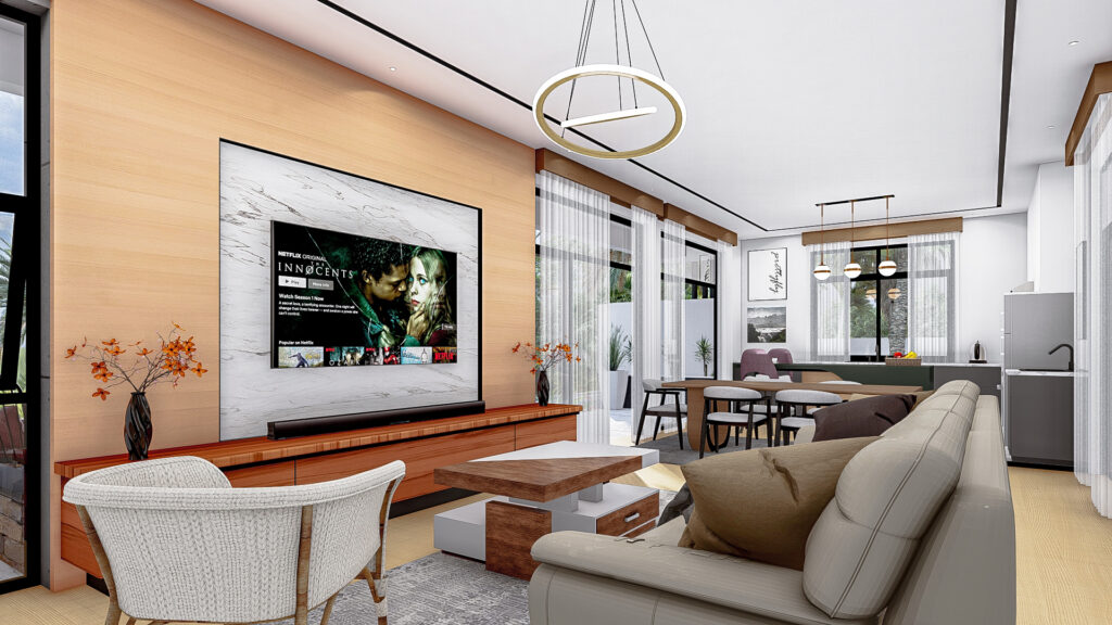 An open-plan interior designed to feel light, welcoming, and effortlessly comfortable.
