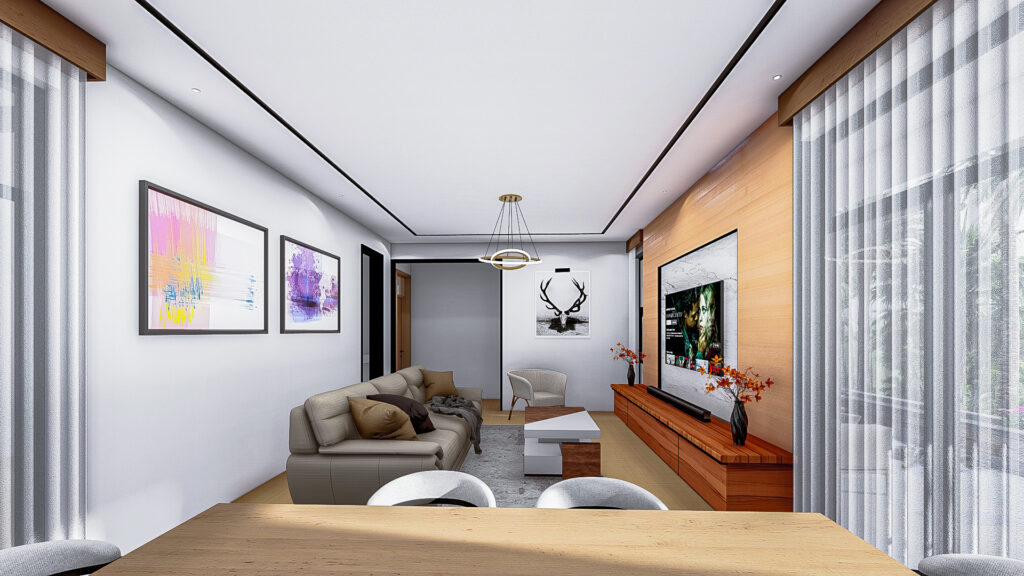 This two-bedroom guest house interior in Shimba Hills, Kwale County is designed as a calm, open-plan retreat that blends beauty with practicality. The layout creates a seamless flow between living, dining, and kitchen spaces, enhancing comfort and ease of movement. Natural light, warm finishes, and thoughtful detailing give the interior a welcoming, modern character, making it an ideal getaway for guests seeking relaxation in a serene environment.